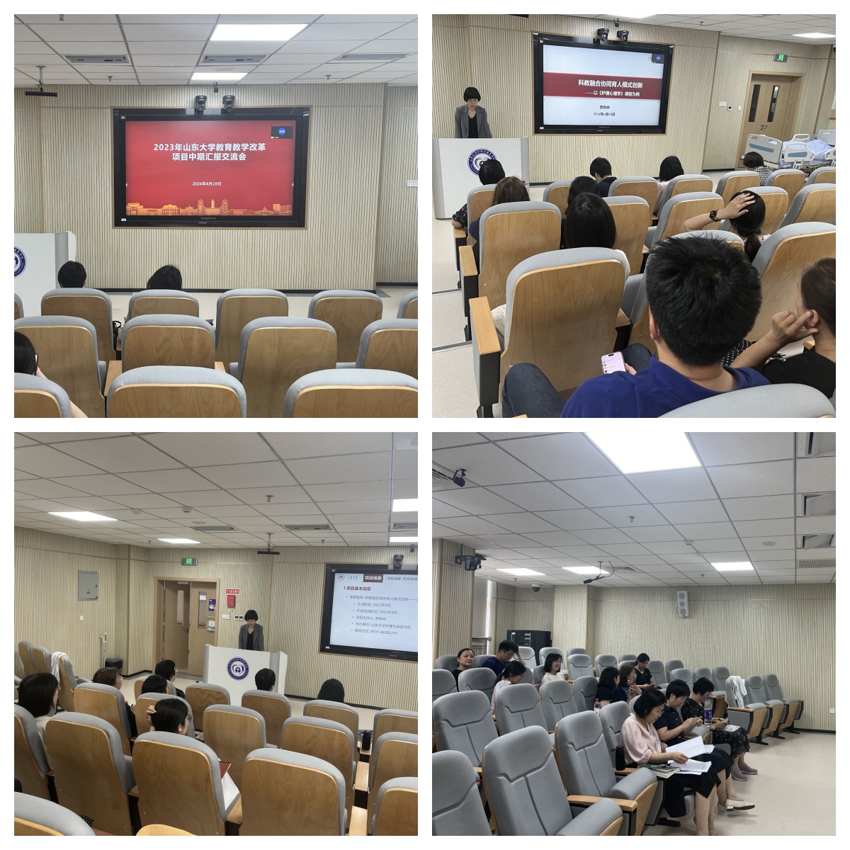 2024年6月19日,2023年suncitygroup太阳集团官方网站教育教学改革项目中期汇报交流会在学院311会议室举办,学院王菊副教授、 齐鲁医院徐秀莲、李敏老师组成评审专家组,对现场汇报进行点评。